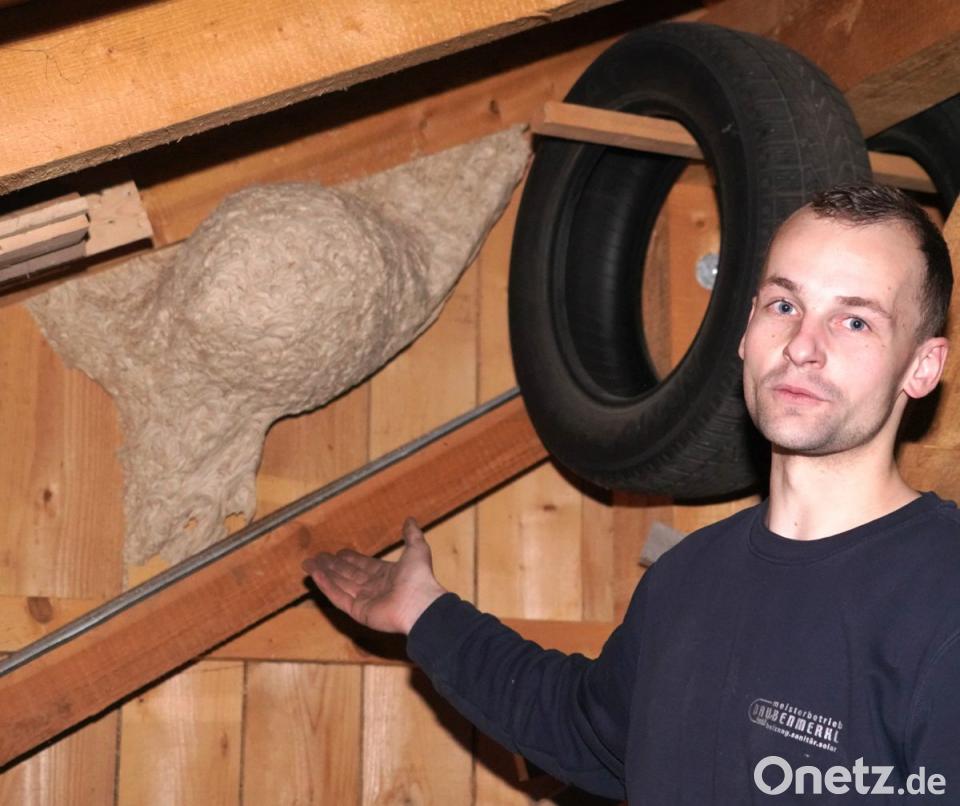"Wir sind trotzdem ganz normal der Arbeit mit unseren Tieren nachgegangen, es gab keine Probleme", erklärte Fröhlichs 22-jähriger Sohn Christoph. Der Heizungsbauer geht an und um der Scheune an der Vohenstraußer Straße seiner Freizeitbeschäftigung der Kleintierzucht nach. Obwohl viele Hunderte Insekten unterwegs waren, habe man sie in Ruhe gelassen und so sei niemand gestochen worden. So konnten sie ihr imposantes "Rundgebäude" direkt neben gelagerten Winterreifen Stück für Stück ausbauen. Derzeit ist das Wespennest leer. Gespannt darf mein auf den Frühling sein, ob in das interessante Gebilde wieder ein Wespenstaat einzieht.