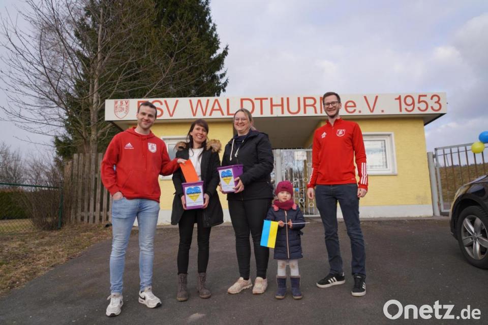 „Kommt alle vorbei und lasst uns zeigen, dass wir für Liebe, Frieden, Gerechtigkeit und gegen den Krieg sind“, erklärten die beiden Initiatorinnen Steffi Weig aus Frankenrieth und Vanessa Ertl aus Waldthurn. Die Fußballer des FSV Waldthurn plünderten kurzerhand ihre Mannschaftskassen und spendeten 100 Euro. Der gesamte Erlös aus Spenden, Bratwurst- und Getränkeverkauf der gemeinschaftlichen Friedensaktion geht an das Deutsche Rote Kreuz zur Weiterleitung in die Ukraine. Insgesamt kamen 7000 Euro zusammen.
