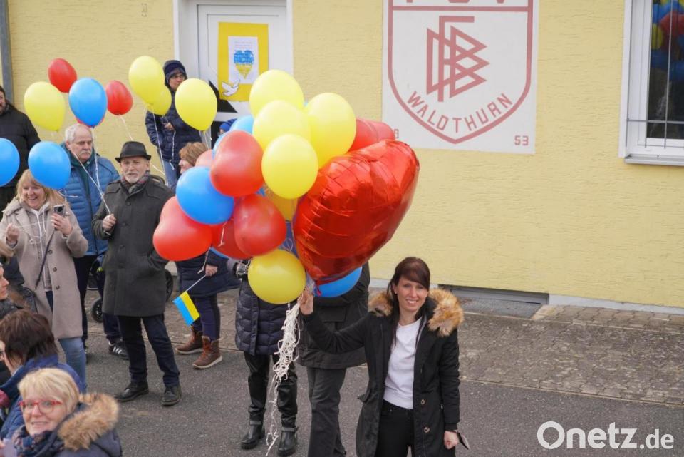Am Freitagnachmittag um 16 Uhr setzten viele Mädchen und Buben mit ihren Familien, aber auch eine Menge Erwachsene, unter anderem die Waldthurner Bürgermeister, am FSV-Sportgelände ihr persönliches Zeichen. Insgesamt 400 Luftballons in Form von roten Herzen, gelbe und blaue Ballons in den Nationalfarben der Ukraine und sogar weiße Friedenstauben starteten meist aus Kinderhänden und stiegen als Zeichen des Friedens und der Liebe in den Oberpfälzer Himmel.