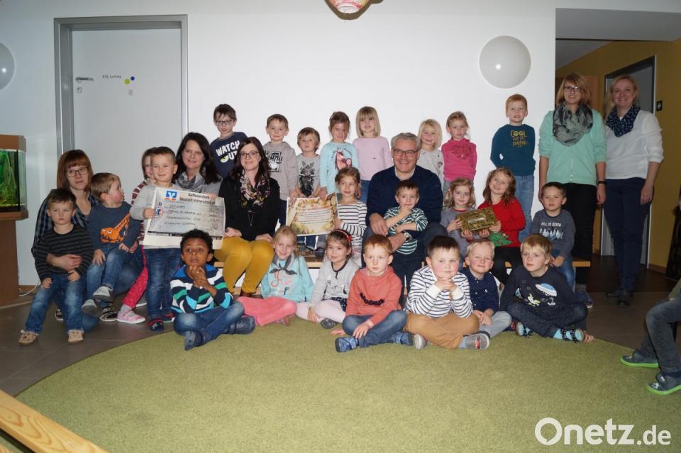 Die beiden Vorstände des Vereins "Hoffnung für Menschen e. V.", Thomas Ebnet und Angelika Taube, nahmen die Spende von 400 Euro der Mädchen und Buben der Kindertagesstätte (Kita) St. Josef entgegen. In diesem Jahr hatten sich die Kita-Kinder in der Vorweihnachtszeit etwas ganz Besonderes einfallen lassen. Zusammen mit ihren Erzieherinnen und mit den Müttern des Elternbeirats backten sie eine Woche lang verschiedene Plätzchensorten.