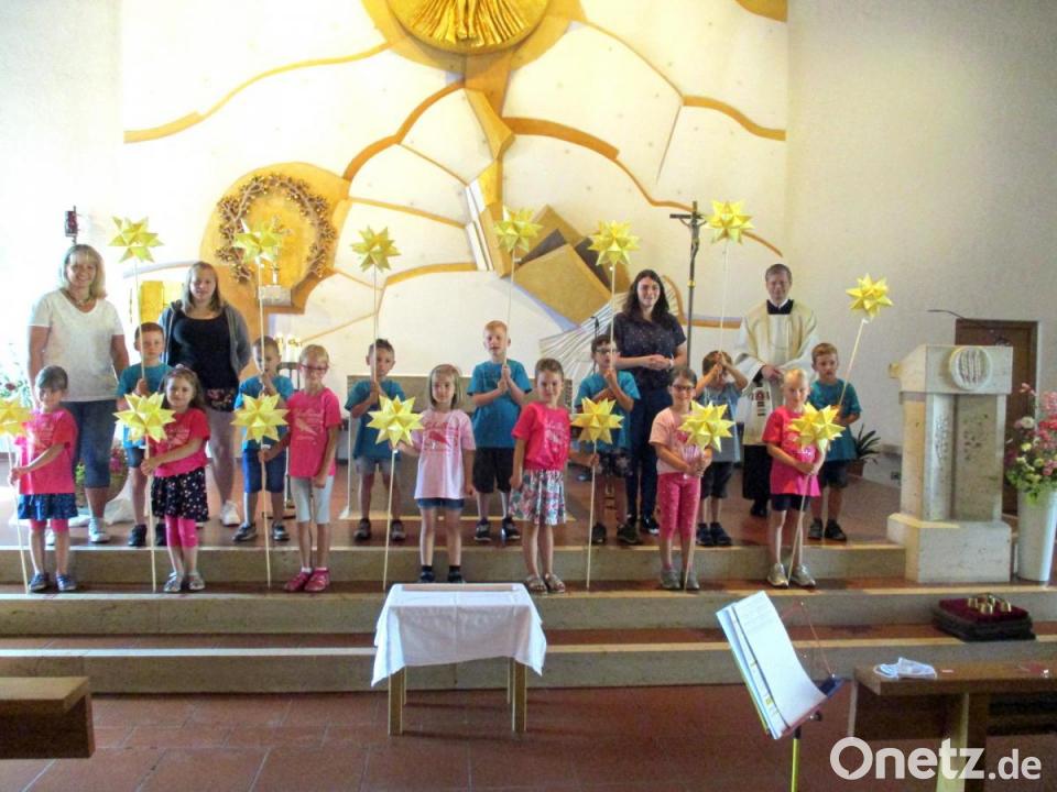 Die Vorschulkinder der Kita St. Josef feierten Abschlussgottesdienst in der Pfarrkirche St. Sebastian. Unter Einhaltung des Sicherheitsabstands zogen sie mit selbst verzierten Sternen ins Gotteshaus ein. Erzieherin Martina Lorenz begleitete die Messe am Akkordeon. Pfarrer Norbert Götz ging auf das Jahresthema „Sterne“ ein und segnete danach die Mosaik-Kreuzchen der Kinder. Voller Stolz nahmen die Kleinen diese von Erzieherin Johanna Meier entgegen. Die Lesung übernahm Praktikantin Theresa Neuber und die Fürbitten Elternbeiratsmitglied Andrea Bodensteiner. Nach dem Abschlussgottesdienst ging es nach Perschen ins Freilandmuseum. Am späten Nachmittag kamen die Kinder wieder in der Kita an, wo sie ihre Eltern im Freien erwarteten. Der „Rauswurf“ ging dank des schönen Wetters ohne Einschränkungen über die Bühne. Eine Seifenblasenmaschine zauberte Hunderte kleiner Seifenblasen.Nach Rauswurf, Abschlusslied mit Überreichung von Urkunden und kleinen Schultüten schloss sich ein vom Elternbeirat organisiertes Luftballonsteigen mit Eisessen an.