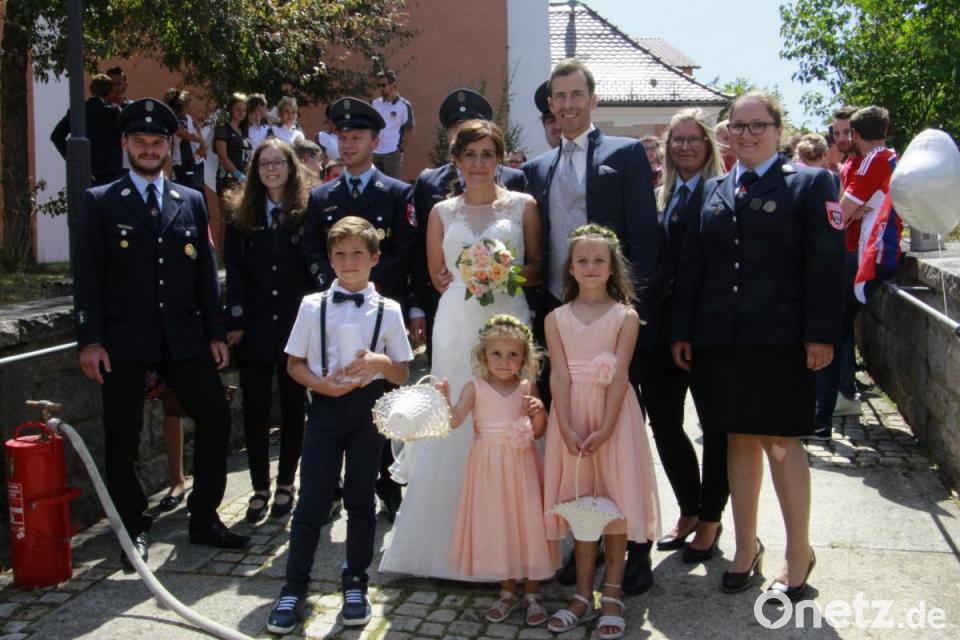 Die Gruppe "Belle Cantanti", Sängerinnen und ein Sänger aus Weiden, umrahmten die Trauung. Die Flosser Adler, der FC-Bayernfanclub Waldthurn, die Waldthurner Feuerwehr sowie die Arbeitskollegen der Braut gratulierten am Kirchenportal. Vor der kirchlichen Trauung besiegelte der Flosser Bürgermeister Günter Stich den standesamtlichen Bund. Freunde des Paars hatten einen Überraschungspolterabend in der heimischen Garage organisiert: „Ihr müsst diese ausräumen, damit mein Geschenk hineinpasst“, meinte der Vater des Bräutigams Helmut Münchmeier gegenüber dem verdutzten Brautpaar. Zur Hochzeitsfeier ging es in das Gasthaus Drei Lilien nach Vohenstrauß, die Brautentführung war beim "Schübladl". Das Paar verbringt seine Flitterwochen in „Bella Italia“.