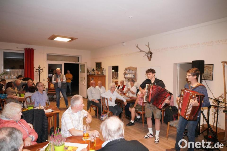 Die Vorsitzenden der Nordoberpfälzer Musikfreunde, Horst Fuchs und Anita Wiendl, konnten auch den aus Waldthurn stammenden Hans Fröhlich begrüßen, der auf der Steirischen aufspielte. Weitere spontan auftretenden Musikergrößen wie Luise Mroske aus Amberg, der Irchenriether Schlagzeuger Rudi Hesl, Alfred Wittmann aus Kleinschwand, Hans Schimmerer aus Matzersreuth bei Tirschenreuth und Hans Lang mit der Drehorgel waren am Start. Die beiden jungen Musiker Simon Hefner aus Vilseck und Felix Lutter aus dem oberfränkischen Rehau auf ihren Akkordeons brachten den Maler-Saal „zum Kochen“. Die Besucher schunkelten, klatschten und sangen mit und hatten einen unterhaltsamen Abend.