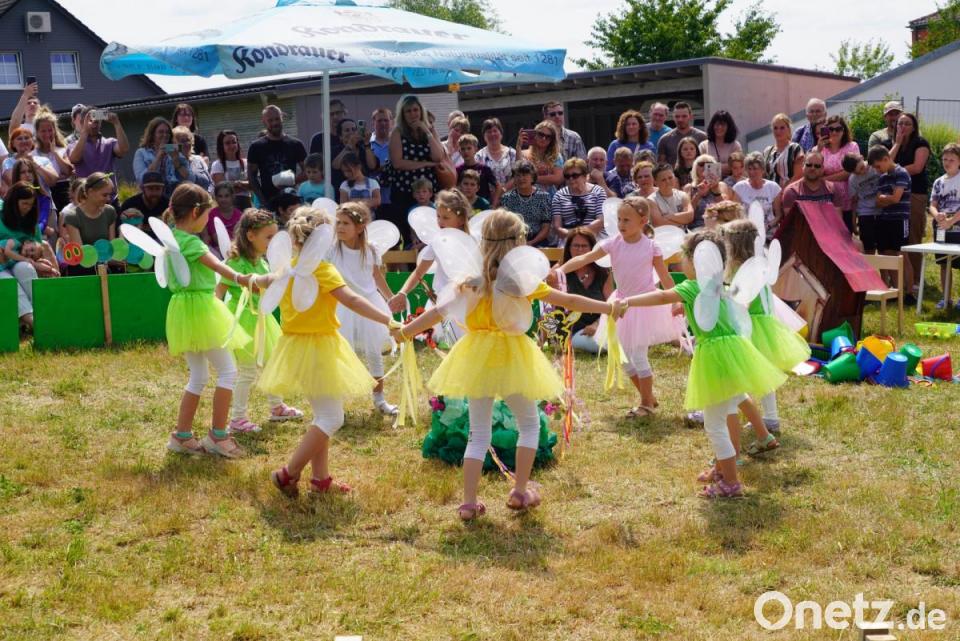 Die Begrüßung im „Wunderwald “machte die Elfe Anna, unterstützt durch Marlene, Emily, Mia, Sophie und Johanna. So marschierten Raupen, Frösche, Drachen, Glühwürmchen auf, zeigte ihr tänzerisches Können, das Dornröschen wurde von strammen Prinzen erweckt und selbstverständlich lockte dies noch mehr Elfen. Ihr komödiantisches Talent zeigten auch die Zwerge, die mit Eimer, Schaufel, Rechen, Spritzpistole oder dicken Bauch immer wieder als Zwischenprogramm mit perfekt abgestimmten Ausfallschritten aufmarschierten. „Wir sind vollkommen überwältigt vom Besuch, es dürften bestimmt 500 Besucher dagewesen sein" , meinte Kick.