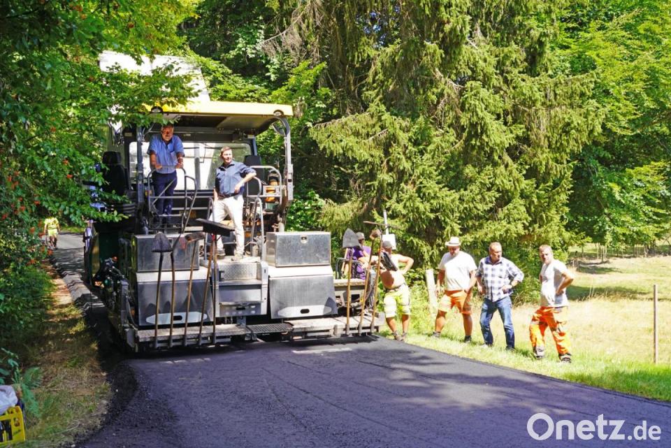 Nachdem die Bauhöfe der beiden Kommunen vorbereitende Arbeiten am Straßenbankett durchgeführt haben, hat nun die Firma Huber aus Rötz die zweilagige Asphaltschicht mit 60 Prozent Recyclingmaterial aufgebracht. „Das ist wieder mal ein Paradebeispiel, wie interkommunale Zusammenarbeit rund um den Fahrenberg speziell zwischen Pleystein und Waldthurn optimal funktioniert“, sagten die beiden Rathauschefs Josef Beimler (Waldthurn) und Rainer Rewitzer (Pleystein) in Beisein des Pleysteiner Bauamtsleiters Uli Rupprecht und des Waldthurner Bauhofchefs Max Müller.