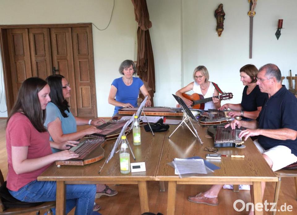 Fünf Zithern und eine Gitarre hallten mit ihren „feinen Klängen“ durch das ehrwürdige Waldthurner Schloss und innerhalb zwei Stunden waren zwei Stücke vierstimmig eingeübt. Souverän leitete Wittkowsky die engagierten Teilnehmer an, so dass schließlich das Stück „Pusteblume“ (von Jörg Lanzinger) melodiös, leise mit einer Leichtigkeit und gewissen Intensität durch den großen Pfarrsaal schwebte. Die Künstlerin stellte fest, dass die Teilnehmer auf einen gleichen musikalischen Level gewesen seien, was das Einüben der Stücke erleichterte: „Des is gwant“, was soviel heißt wie „Das ist sehr gut“ lobte die Regensburgerin mit oberbayerischem Einschlag. Das zweite Stück „La Canarie“, ein ausgelassener Tanz von Michael Praetorius war eine völlig andere Stilrichtung der Renaissance.