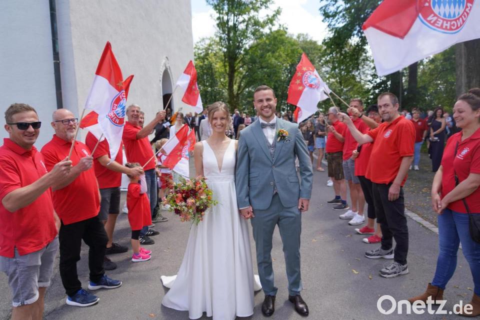 Wenig überraschend war es, dass die Fußballer des FSV Waldthurn nach der Trauung am Kirchenportal standen, um ihrem "Käptn" sowie Mittelfeldstrategen und seiner Braut herzlich zu gratulieren. Auch die Bayernfans Waldthurn wünschten dem "Fan der roten Bayern" und seiner Frau alles Glück der Welt.