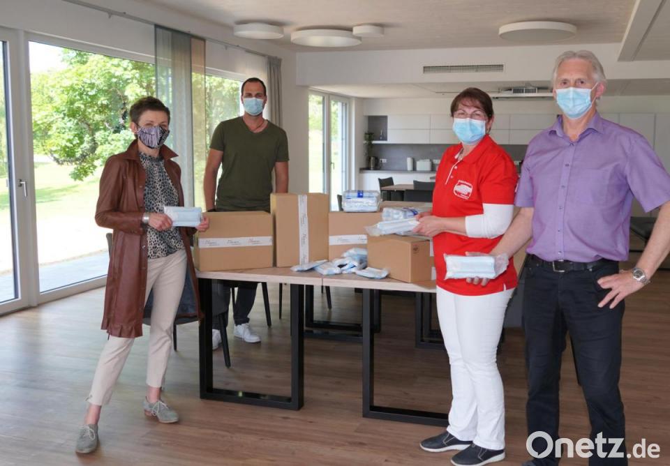 Die Flosser Firma Nexans autoelectric GmbH denkt auch in diesen schwierigen Zeiten an die Gesundheit von Menschen in der Region. Maria Schmidt, Leiterin der Unternehmenskommunikation, überreichte am Mittwoch an die Leiterin des Waldthurner Pflegediensts Gratus Manus, Regina Bäumler, deren Ehemann und Geschäftsführer Reinhold Bäumler sowie an Schwiegersohn Stefan Reber, der die neue Tagespflege "Unterm Fahrenberg" am Waldthurner Badeweiher führt, 3000 Einfach-OP-Masken im Wert von 1800 Euro.