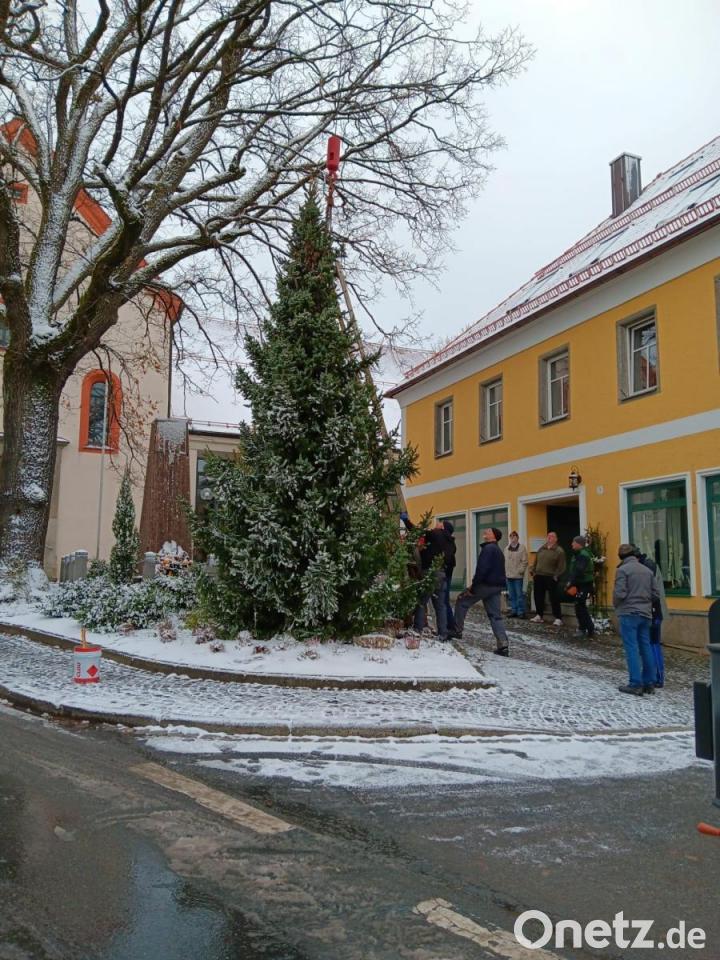 Traditionell vor dem ersten Advent hat der Oberpfälzer Waldverein (OWV) Waldthurn am vergangenen Samstag einen "Christbaum für alle" auf dem Marktplatz beim Kriegerdenkmal aufgestellt. Die Siedlergemeinschaft Waldthurn stiftete in diesem Jahr eine wunderschön gewachsene Tanne, die mit zahlreichen Lichterketten verziert das bevorstehende Weihnachtsfest ankündigt. Dieter Malzer organisierte zahlreiche Helfer, die beim Fällen des stattlichen Baumes und beim Aufstellen mitgeholfen haben.