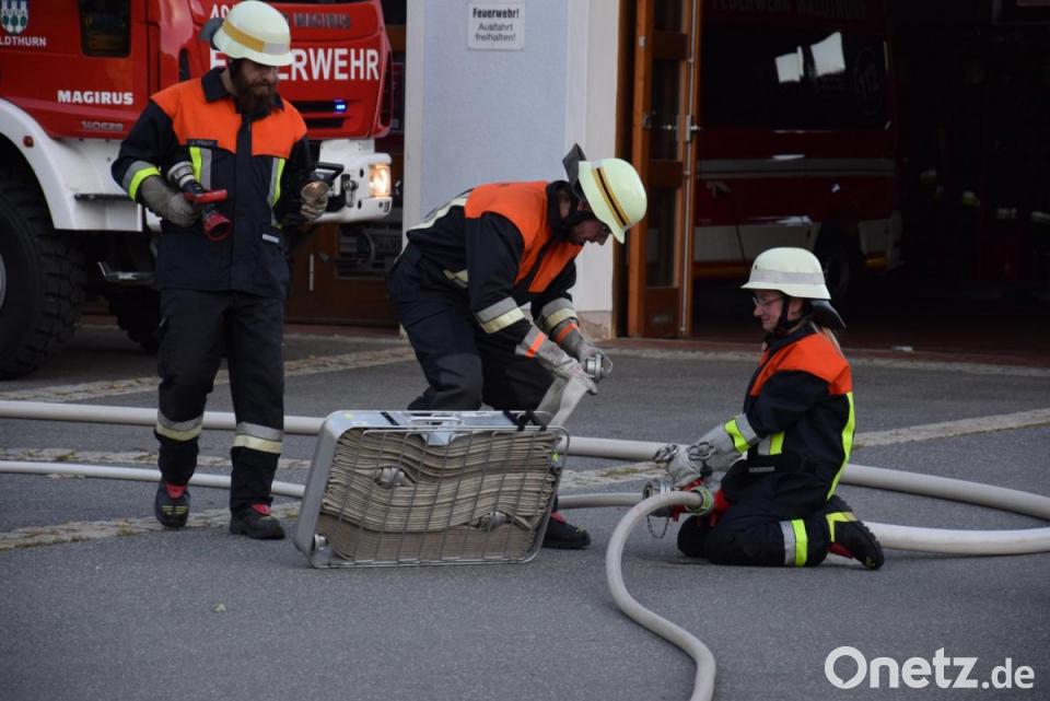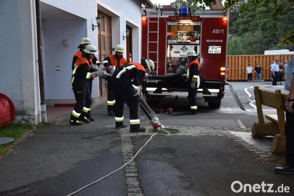 Unter den kritischen Augen der Schiedsrichter, Kreisbrandinspektor (KBI) Martin Weig (Vohenstrauß), Kreisbrandmeister (KBM) Alexander Kleber (Waldthurn) und Harald Dirnberger (Micheldorf), absolvierten zwei Gruppen der Feuerwehr Waldthurn kürzlich die Leistungsprüfung „Wasser, Variante 1“. Die Löschwasserentnahme aus einer Zisterne mit den Aufbauten „Saugleitung zur Pumpe“, Druckleitung zum Verteiler und weiter zu den drei angenommenen Einsatzstellen funktionierten problemlos. Auch die Trockensaugprobe lief fehlerfrei ab. Die Zusatzaufgaben aus Geräte- und Fahrzeugkunde sowie verschiedene Knoten und Stiche bereiteten den Prüflingen ebenfalls keine Probleme. Gruppenführer Valentin Reil hatte die Gruppen bestens vorbereitet. KBI Weig betonte die gute Zusammenarbeit in den Gruppen: „Wir haben heute gesehen, wenn man ruhig arbeitet, schleichen sich keine Fehler ein.“