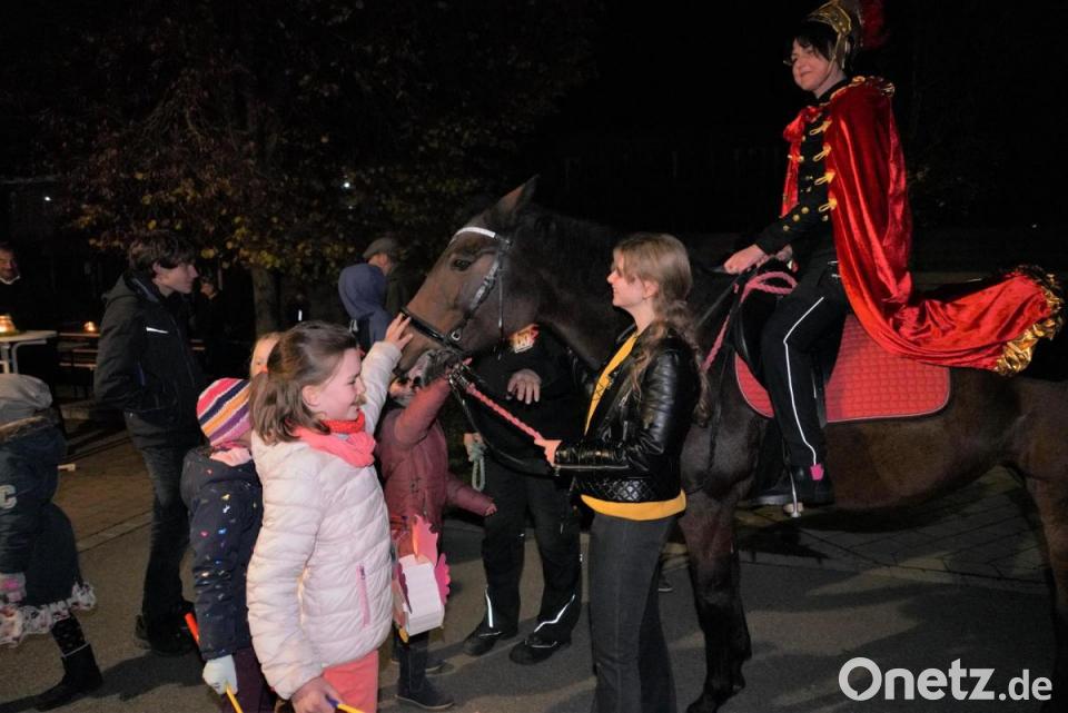 Pfarrer Norbert Götz erklärte den jungen Christen kurz den Sinn der Martinfeier und meinte, dass Martin der Heilige sei, den alle Kinder kennen. Hoch zu Pferde führte der berittene Patron –verkörpert von Rebecca Bergler – einen langen Laternenzug zum Eingang der herrlich geschmückten Kita. Pfarrer Götz segnete neben dem Martinsfeuer auch die Martinshörnchen und verteilte diese. Der Martinsfeier schloss sich ein buntes Treiben unter der Leitung des Kita-Elternbeirats mit Claudia Fichtl an der Spitze an.