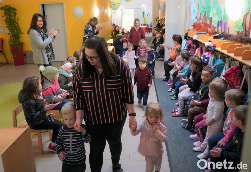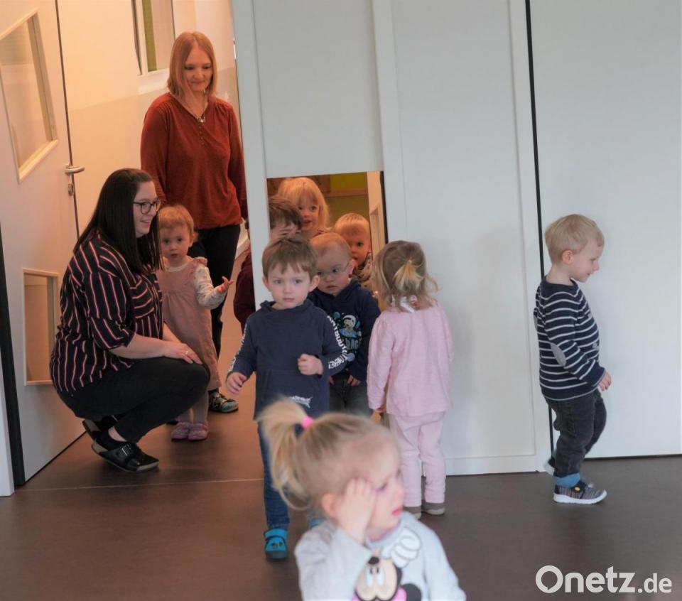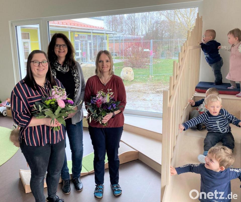 Eigentlich war alles ganz anders geplant. Die „Frösche“, wie sich die Gruppe der Kinderkrippe der Kindertagesstätte St. Josef Waldthurn nennt, wollte bereits am 12. Oktober in ihren nagelneuen Krippenraum einziehen. Doch dann gab es einen Wasserschaden im Gebäude und die Kinder mussten sich lange gedulden. Jetzt, nach 167 Tagen Aus- und Rückbau, Trocknung, Reparatur, Bestrahlung, Neu- und Einbau, war es am Dienstag endlich so weit. Stolz zogen die Mädchen und Buben im Alter von einem bis drei Jahren mit den beiden Krippenpädagoginnen Vanessa Bäumler (Erzieherin aus Letzau) und Nicole Adler (Kinderpflegerin aus Hagendorf) vom Gruppenraum der Kindergartenkinder in ihre trockene, neue Unterkunft.