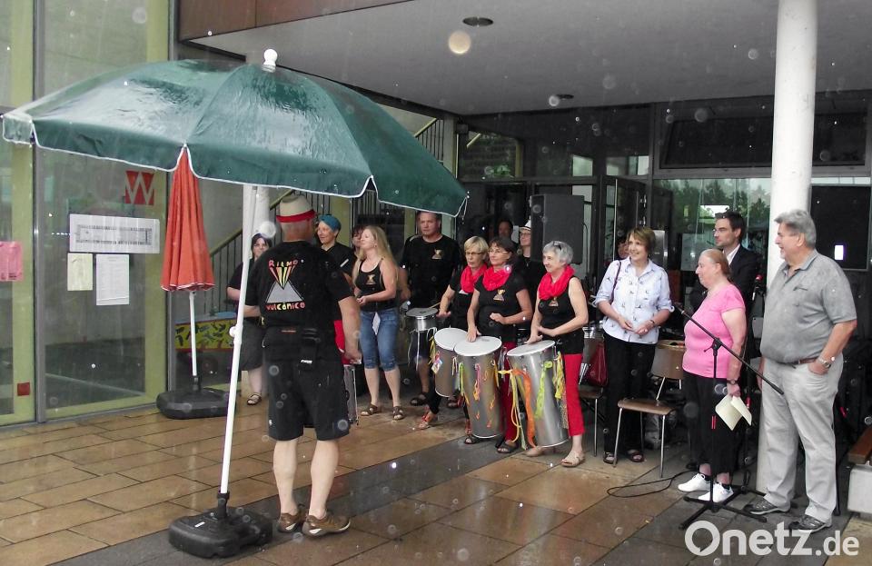 (rdo) Ob bei Regen oder Sonnenschein, das traditionelle Baumfest im Stockerhutpark fand wieder statt. Zuerst auf dem Platz vor dem Stadteilzentrum, dann im Bürgersaal. Ein buntes Programm hatten die Vorsitzende der Initiative, Ursula Barrois, und das Café Mitte mit Vorsitzender Thea Rauchenecker und viele Helfer auf die Beine gestellt. Zum 10. Jubiläum der Lindenallee feierten viele Gäste trotz heftigen Regens ein fröhliches und völkerverbindendes Fest.