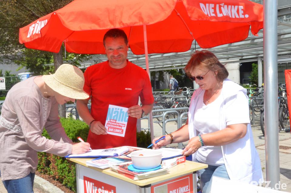 Weiden. (uz) Die Linke solidarisierte sich am Samstag mit den insgesamt 1,2 Millionen Beschäftigten in der Pflegebranche. Denn durch die Proteste und Streiks von Krankenhaus- und Pflegepersonal sei inzwischen klar, dass die Pflege am Boden liege und Bundesgesundheitsminister Jens Spahn liefern müsse, betonte Kreisverbands-Chef Ali Zant. Deshalb sammelte die Linke vor dem Weidener Klinikum Unterschriften gegen den "eklatanten" Pflegenotstand.