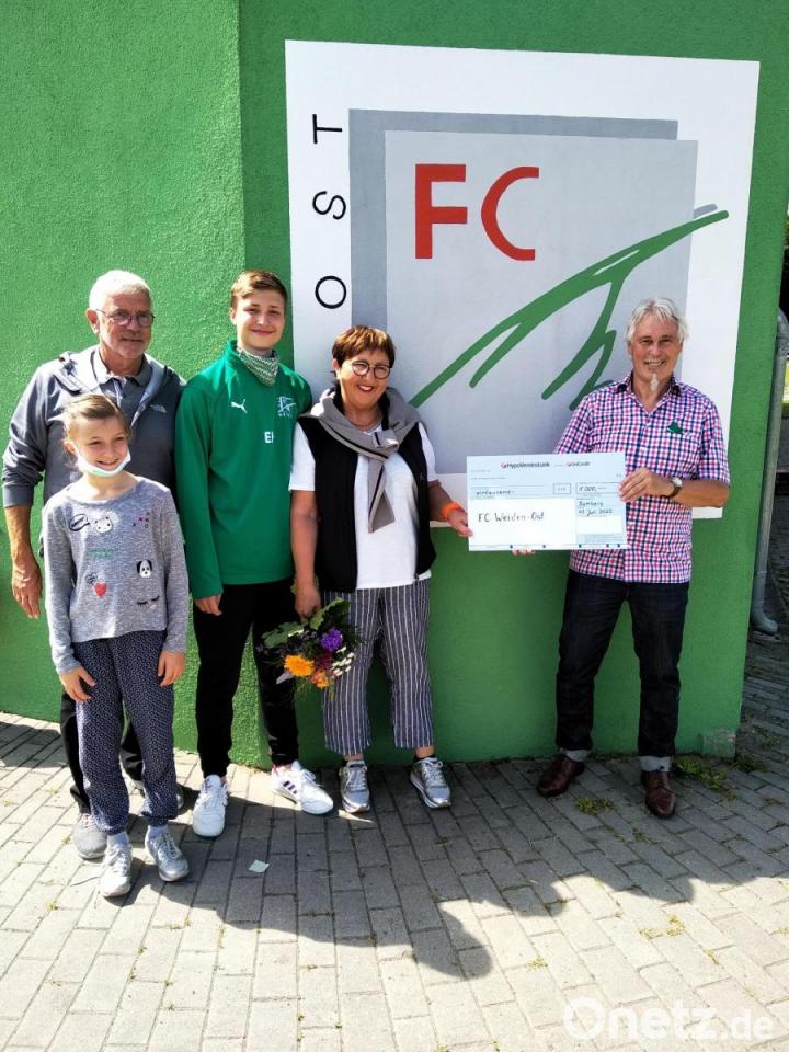 Beate und Ulrich Dura-Kempf unterstützen die Jugend- und Nachwuchsarbeit des FC Weiden-Ost mit einer Spende in Höhe von 1000 Euro.