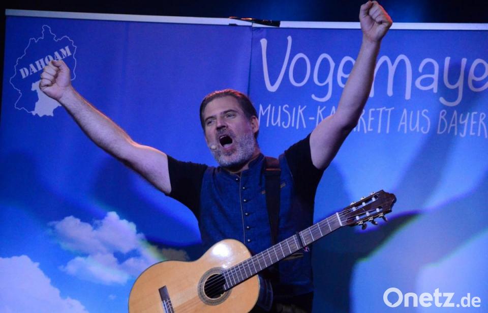 Der Peter im Publikum bekam sein Geburtstagsständchen auf Englisch und Deutsch. Auch für den elfjährigen Elias gab's ordentliche Tipps. "Tu in der Schule fleißig lernen, sonst musst du später so was machen wie ich." Oft sei es sinnlos, sich den Kopf über Dinge zu zerbrechen, auf die man keine Antwort findet. Beispiel: "Warum sitzen junge Menschen heute zwei Stunden länger vor dem Computer, als noch vor 100 Jahren?" Vogelmayer rühmt sich, einmal zum größten Konzert in Bayern beigetragen zu haben. Insgesamt waren es 90.000 Zuschauer, addiere man zu seinem damaligen Auftritt in Nabburg das Ed-Sheeran-Gastspiel in München dazu, meint er selbstbewusst.
