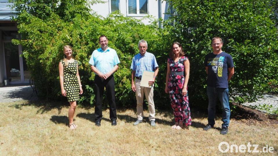Behördenleiter Mathias Rosenmüller, Abteilungsleiterin Renata Bueno Alves, die stellvertretende Sachgebietsleiterin Isabell Dobmeier und Personalratsvorsitzender Christoph Gollwitzer gratulierten Anton Baumann zu diesem besonderen Jubiläum.