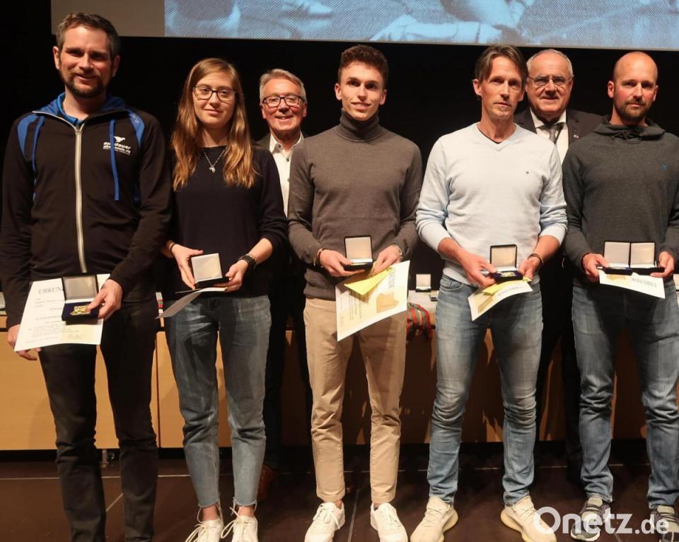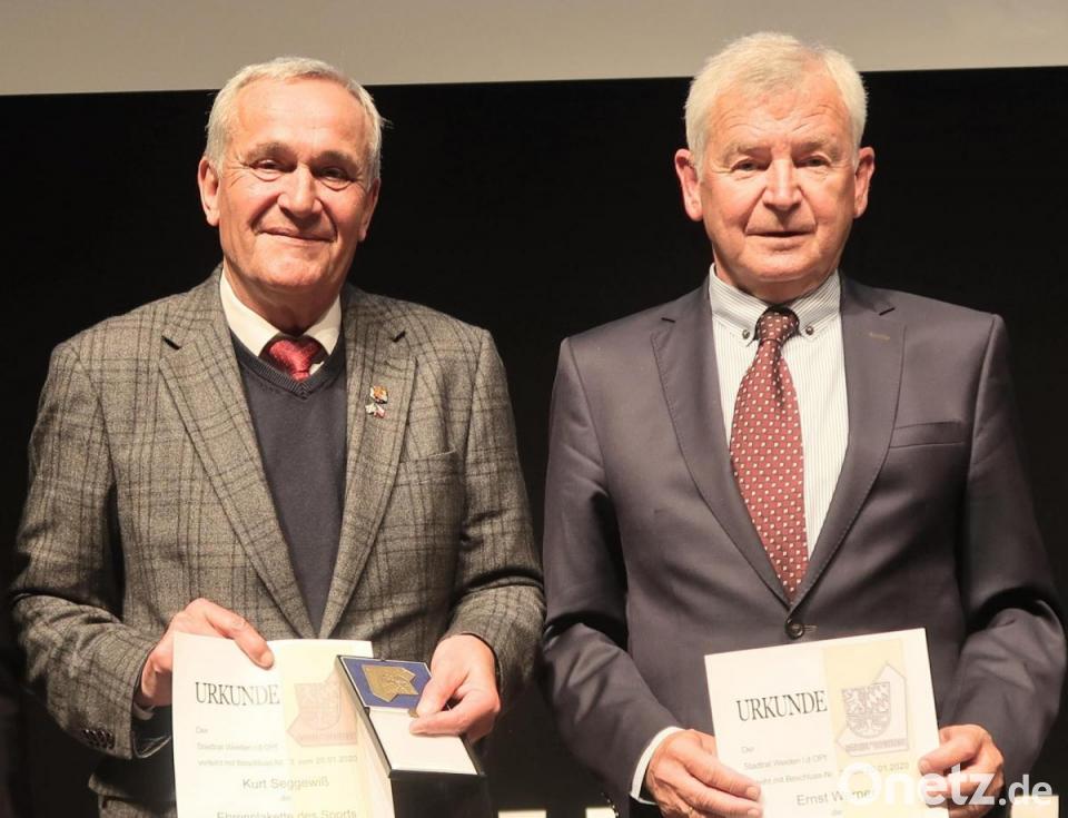Aus den aufgeklappten Etuis funkelte es golden und silbern. 174 geladene Sportler aus Weiden würdigte die Stadt am Freitagabend in der Max-Reger-Halle bei einer festlichen Sportlerehrung mit Medaillen, Plaketten und Urkunden für ihre Leistungen aus den Jahren 2019 bis 2021. Die beiden Funktionäre Ludwig Kastl vom VfB Rothenstadt und Ernst Werner vom BLSV wurden für ihre Verdienst um den Weidener Sport mit der Plakette in Silber geehrt. Alt-Oberbürgermeister Kurt Seggewiß erhielt die Auszeichnung in Bronze. Bis hin zu Europa- und Weltmeistern war bei dieser Sportlerehrung alles vertreten.
