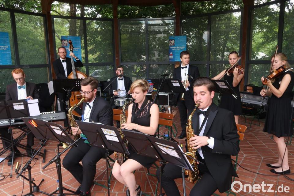 Zu Gehör kamen Klassiker wie „Ich brech die Herzen der stolzesten Fraun“, „Capri Fischer“ oder „Heimatland“. Aber auch selten gehörte Lieder, die ebenfalls mit Anmut und Grazie aufgelegt wurden. Musik, die in vor dem Zweiten Weltkrieg von den großen deutschen Rundfunk- und Tanzorchestern rauf- und runter gespielt und von Kaiser und seinen acht Studenten nun wieder zum Leben erweckt wurden. Am Mittwoch folgt Country mit den „ Mountaineros“.