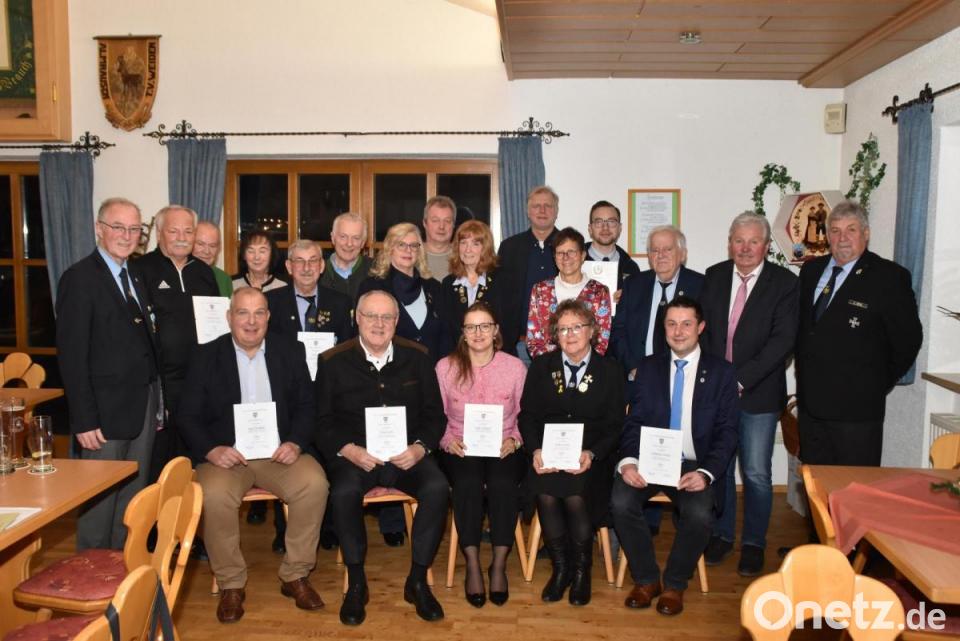 Für 10-jährige Mitgliedschaft wurden mit Nadel und Urkunde ausgezeichnet: Horst Embacher, Giesela Forster, Hans-Jürgen Gmeiner, Agnes Götz, Stephan Gollwitzer, Lothar Höher, Hans Käs, Richard Kropf, Josef Lang, Gustl Lautenschlager, Larissa Möller, Reinhardt Moeller, Dieter Naber, Heiner Nachtmann, Josef Östreicher, Wolfgang Pausch, Gerhard Schmauß, Hans Stock, Heinrich Vierling, Hildegard Ziegler und Stefan Zrenner. Für 20-jährige Treue: Genoveva Heigl und Franz Kaiser. Für 25 Jahre: Thomas Ertl und Josef Krämer. Für 40 Jahre: Rita Saller. Das Ehrenkreuz der „7er“ bekam Gertraud Friedrich.
