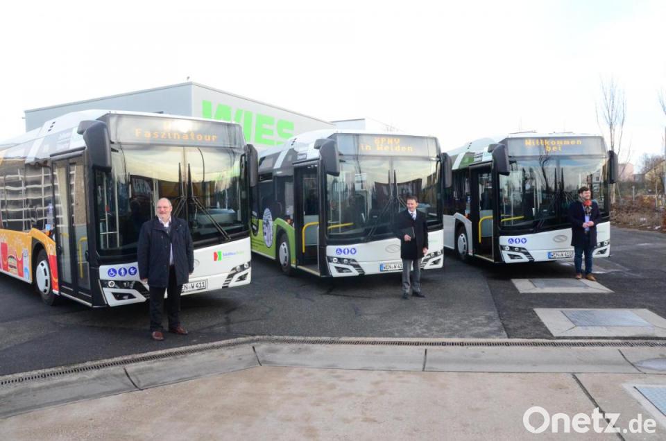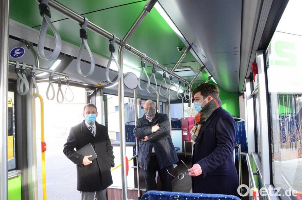 Der Einbau von Abbiegeassistenten werde ab 2023 Pflicht werden, betonte Wolfgang Wies, der die neue Vorrichtung gemeinsam mit Maximilian Wies Oberbürgermeister Jens Meyer auf dem firmeneigenen Betriebsgelände präsentierte. Von den 25 Bussen im Stadtverkehr seien jetzt bereits 14 ausgerüstet. Entweder schon ab Werk oder im Nachrüstverfahren. Wie Wolfgang Wies erklärte, werde sein kompletter Stadtbusfuhrpark bis Ende 2021 auf die Sicherheitssystem umgestellt sein. „Und wir werden auch die Überlandbusse nachrüsten.“