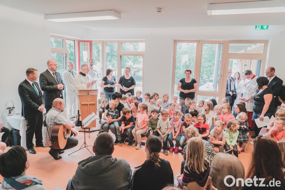 Die Kinder waren es dann auch, die all den Planungsärger vergessen ließen. Sie sangen und klatschten bei der Einweihungsfeier aus voller Kraft, sehr zur Freude der Eltern, geladenen Gäste und Diözesancaritasdirektor Michael Weißmann, der die Räume kirchlich segnete. Kinder seien unsere Zukunft, sagte der Diakon. Er finde, das hier entstandene Gesamtkonzept mit der Nähe zum Altenheim fantastisch. Hier werde eine Kultur des Miteinanders gelebt und wertvolle zukunftsorientierte pädagogische Arbeit geleistet.