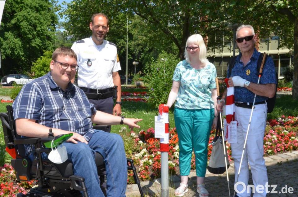 Beteiligt war die Blickpunkt-Auge-Beratungsstelle in Regensburg. Es gehe um mehr Sicherheit auf Gehwegen in Weiden, betonte Pichlmeier. Viele fleißige Hände haben in den vergangenen Wochen Pollermützen gehäkelt und gestrickt, die nun rund um den Sehbehindertentag zum Einsatz kommen.