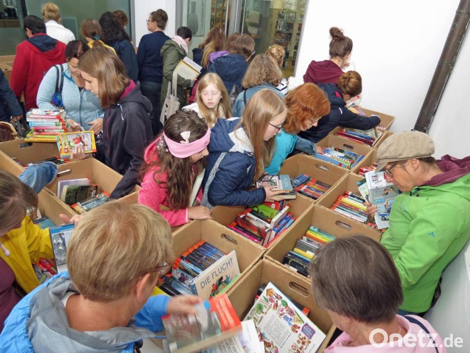 Unter den Angeboten waren auch Bilder- und Jugendbücher, dazu Hörbücher, CDs und Konsolenspiele. Das Team der Bibliothek hatte viele Medien ausgemustert. Laut Leiterin Sabine Guhl haben insbesondere viele Reiseführer und Romane nach den Sommermonaten ausgedient. Sie dankte den Vorstandsmitgliedern des Fördervereins „Pro Libris“, die sich bei der Betreuung und an der Kasse verdient machten. Dankbar ist „Pro Libris“ auch für gespendete Buchnachlässe aus Haushaltsauflösungen. Die alten Bücher brächten Geld für neue Anschaffungen, freute sich Sabine Guhl über den regen Zuspruch. Trotz Regens wühlten viele in den Bücherkartons im Vorraum und in den Seitennischen und nahmen oftmals ganze Stöße an Büchern mit.