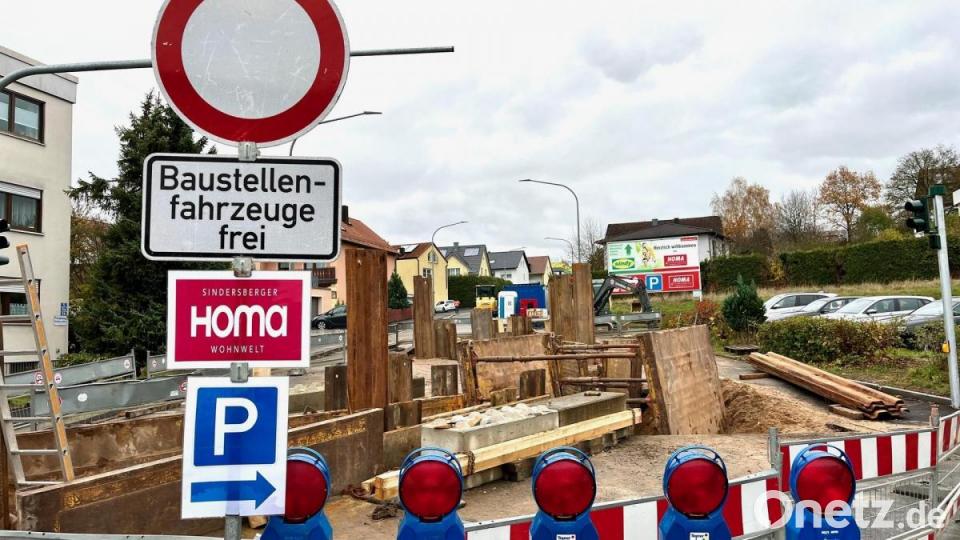 Das müssen Verkehrsteilnehmer beachten: Im Bereich der Baustelle bleibt der Kundenparkplatz bei der Homa Sindersberger Wohnwelt einspurig über die Christian-Seltmann-Straße erreichbar. Eine Umleitung über die Rehbühlstraße führt zum Sindy Mitnahme-Markt.