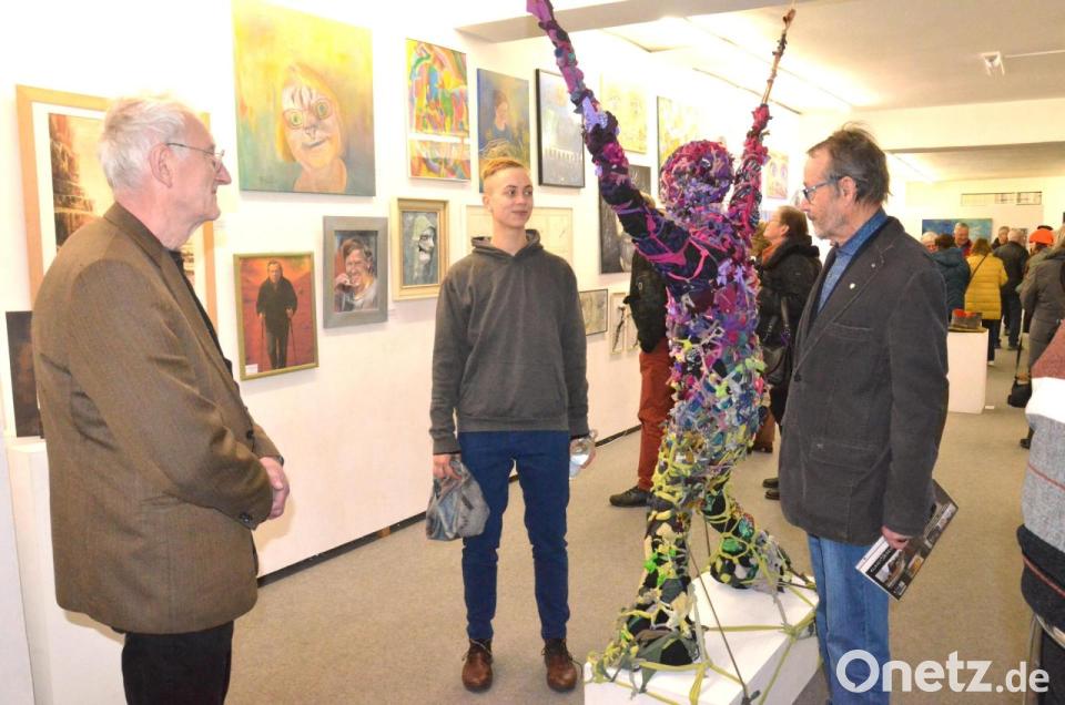 Müller blickte zudem auf die Entwicklung der Schau zurück. Vor 20 Jahren sei der Kunstverein noch „ein Tempel für etablierte Künstler“ gewesen. Mit der Idee von Gabi Hammer habe sich das Verständnis erweitert: Kunst beinhalte viele Perspektiven und viele Ausdrucksformen. Und alle hätten Platz. Das zeige sich besonders in diesem Jahr. Im Mittelpunkt stünden Porträts, Figuren, Objekte und Skulpturen, erläuterte Wolfgang Herzer in seinen Gedanken zur Ausstellung.