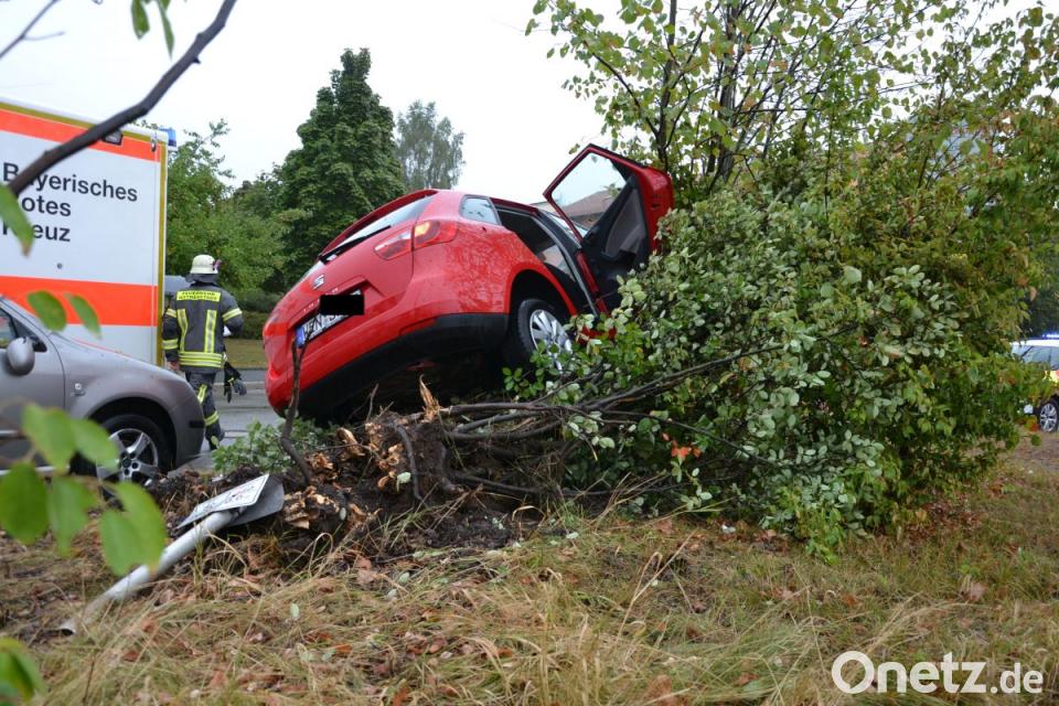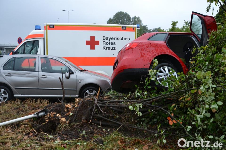 Nach bisherigen Informationen war der Seat stadteinwärts unterwegs und kam nach links von der Fahrbahn ab. In der Böschung knickte er ein Schild um und entwurzelte ein ein Gebüsch. Dann rammte er ein in der Bavariastraße abgestelltes Auto und blieb mit Schräglage stehen. In einer ersten Meldung hatte es geheißen, der Fahrer sei eingeklemmt. Dieser konnte aber offenbar das Fahrzeug verlassen, nachdem der geparkte Wagen weggeschoben wurde. Der 54 Jahre alte Weidener wurde laut Polizei verletzt und ins Klinikum eingeliefert.