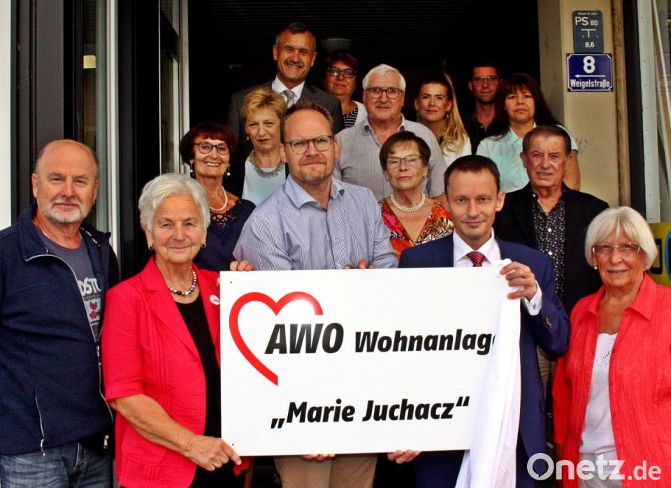 Dem Weidener Vorschlag zur Umbenennung der Wohnanlage in Weigelstraße 8 stimmte der Bezirksvorstand als Betreiber zu. Der örtliche Kreisverband richtete eine kleine Feier aus. Zebisch daran, dass der Spatenstich für die Wohnanlage vor genau 50 Jahren erfolgt war. Architekt Heiner Schreml hatte das Gebäude mit die 35 Wohnungen und einer Höhe von 25 Metern geplant. Und es gibt noch ein Jubiläum: „Essen auf Rädern“ ist ebenfalls ein halbes Jahrhundert alt. Der Service versorgt die alten Menschen mit warmem Mittagsessen.