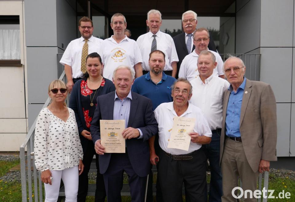 Nach dem Kassenbericht und den Neuwahlen, bei denen es keine Veränderungen gab, überreichte der Obermeister dem Fachverein Weiden einen Scheck für die optimalen Vorbereitungen und Aufwendungen zum Verbandstag. Für 50-jährige Mitgliedschaft ehrte der Fachverein Weiden Hans Bäumler aus Vohenstrauß und Heribert Lindner aus Lückenrieth bei Leuchtenberg.