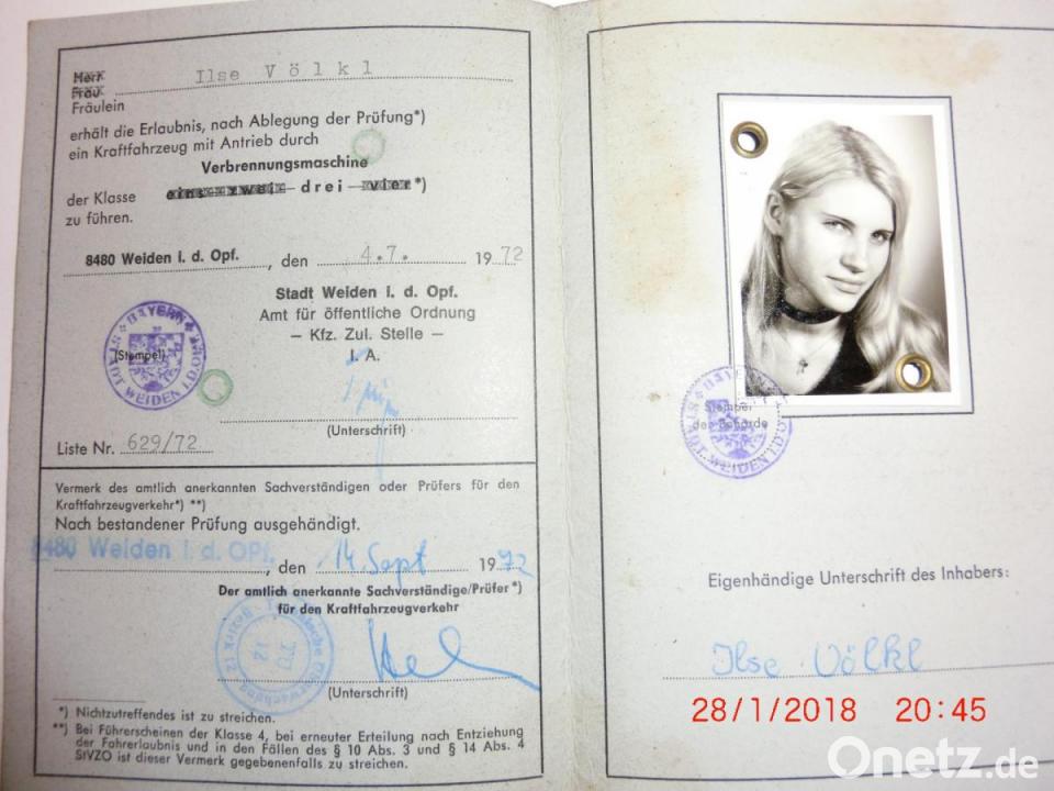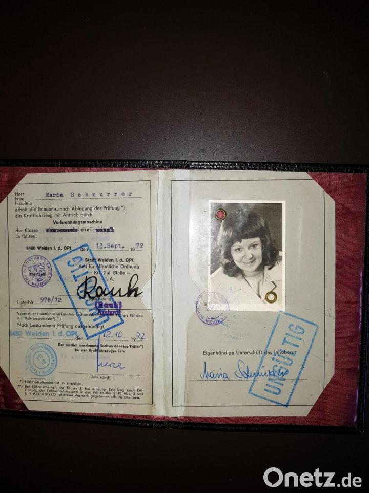 - Auch sie hängt an ihrem alten "Lappen": Ilse Wittmann, die damals noch Völkl hieß, hat ihre Fahrstunden 1972 bei der Fahrschule Greiner in Weiden gemacht, erinnert siesich. Sie wohnt inzwischen in Letzau, ist 65 Jahre alt, der Führerschein ist seit 46 Jahren ihr treuer Begleiter. "Er kann mit mir gerne weiterhin alt werden", wünscht sie sich.