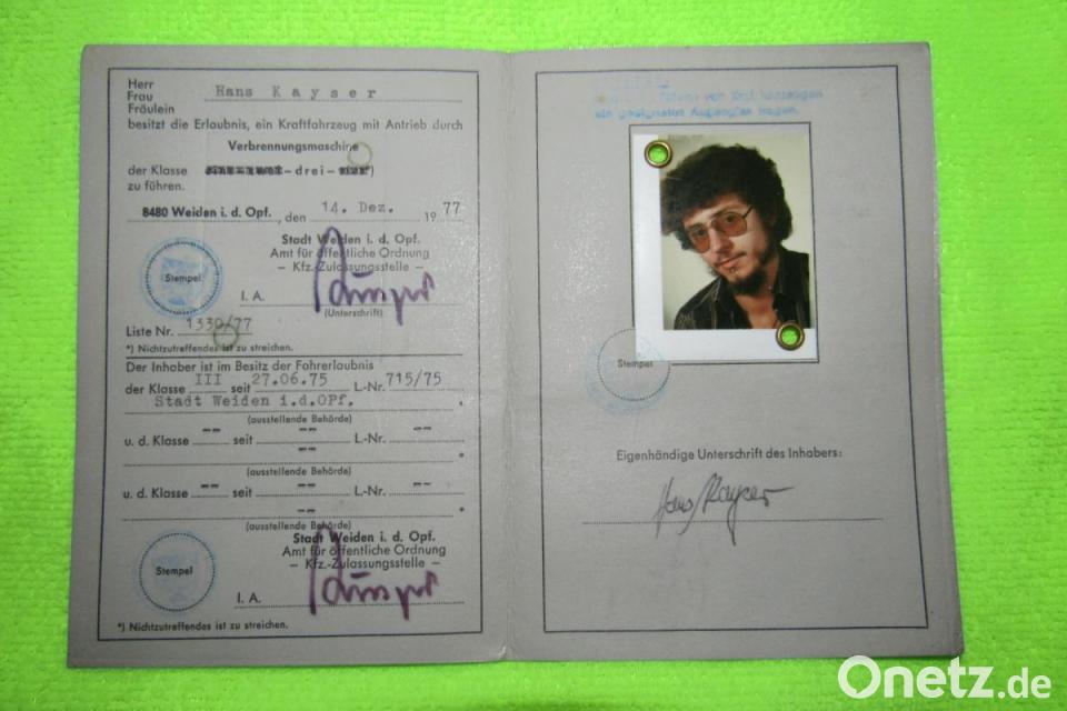 - Hans Kayser aus Weiden erinnert sich noch ganz genau an die Hürden, die er mit seinem "Lappen" überwinden musste. Damals war der Führerschein noch lebenslang gültig. Musste man Änderungen vornehmen, gab es nur die Möglichkeit, sich einen Ersatzführerschein ausstellen zu lassen. "Dies wurde auch bei mir sehr bald Realität, da innerhalb von gut zwei Jahren das Passbild wenig Ähnlichkeit mit der Wirklichkeit aufwies", erzählt der heute 62-Jährige. Ein neues Foto mit Brille und Lockenfrisur musste her. "Im Normalfall war das kein Problem. Durchfuhr man damals jedoch das Gebiet der ehemaligen DDR, konnte es schon bitter werden", erinnert Kayser sich. Der neue Führerschein war gerade noch pünktlich zum Studienbeginn in Berlin fertig. Aufbewahrt hat er es bis heute.