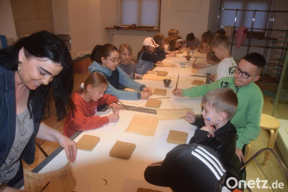 Der Besuch im Keramikmuseum war besonders für die kleinen Besucher der Nacht der Bibliotheken spannend. Neben Führungen war der Keramikworkshop mit Irene Fritz ein Höhepunkt. Die Kinder waren begeistert darüber, wie Menschen früher ihre Geschichten auf Ton und Papyrus festhielten. Von der Keilschrift bis hin zu Hieroglyphen – alles wurde ausprobiert und nachgemacht.