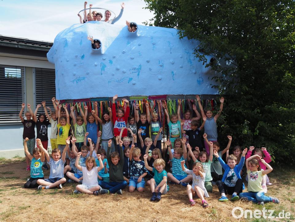 "Jedes Kind hat mit modelliert", berichtet Schulleiterin Gerda Högl-Siegler. Farbkleckse der Kinder an den Außenfronten wurden künstlerisch umgestaltet. Eine Öffnung zum Himmel, Bullaugen und sternförmige Lüftungsöffnungen ergänzen das Bauwerk. Wer kommt, muss sich mit einem Tür-Gong anmelden. Die gesamte Entstehungsgeschichte sowie die jetzt beginnende Nutzung sind eng in die Montessori-Pädagogik der Schule eingebunden, erklärt die Schulleiterin. Der Erfolg ist vorprogrammiert, weil Kinder zu dem Projekt eine ganz persönliche emotionale Beziehung entwickelt haben. Die Montessori-Pädagogik arbeite ganzheitlich, individuell und mit einer vorbereiteten Umgebung, damit sich Kinder zu selbstständigen und unabhängigen Menschen entwickeln, erläutert die Schulleiterin.