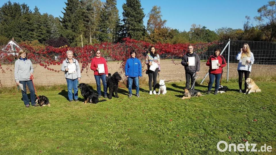 Alle Prüfungsteilnehmer haben die Prüfung bestanden und erhielten am Nachmittag die Urkunden. Das waren: Uschi Straka mit Luna, Alexandra Singer mit Milo, Andrea Schwarzmeier mit Joschi, Shamika Löchel mit Chomsky, Tobias Meiser mit Ike, Franziska Hotek mit Nelly und Doris Würschinger mit Maya.