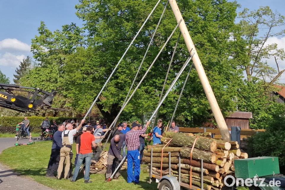 Als Maibaum wird ein geschmückter Baum oder Baumstamm bezeichnet. Dieser wird nach altem Brauch je nach Region entweder am 1. Mai oder auch schon am Vorabend aufgestellt. Die Dorfgemeinschaft in Frauenricht stellte ihn am Dienstag auf, eine Fichte mit 24 Metern Höhe. Für die Kinder war es ein tolles Vergnügen, die Bänder und Girlanden an den frisch geschlagenen Baum zu binden. Nach alter Sitte hoben die Männer mit „Schwalben“ den Baum an, die Schaufel eines Traktors sicherte, bis die 17 Männer den Baum unter Kontrolle in die Höhe hievten.