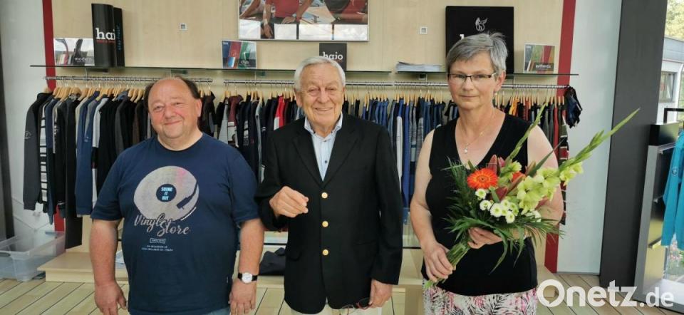 Hans Jochen Müller von der Geschäftsleitung gratulierte persönlich. Er hat die beiden Jubilare vor viereinhalb Jahrzehnten auch eingestellt.