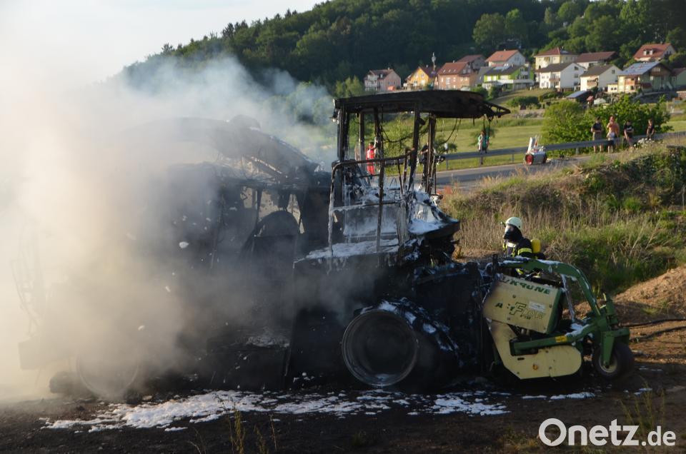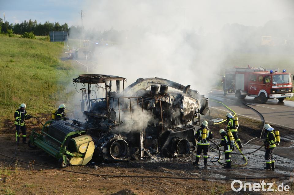 Die starke Rauchentwicklung war weithin zu sehen: Bei der Fahrt nach Schwarzenfeld hat sich vermutlich durch einen technischen Defekt ein neuwertiger Feldhäcksler in Brand gesetzt. Unsere Bildergalerie zeigt den Einsatz der Feuerwehrleute.