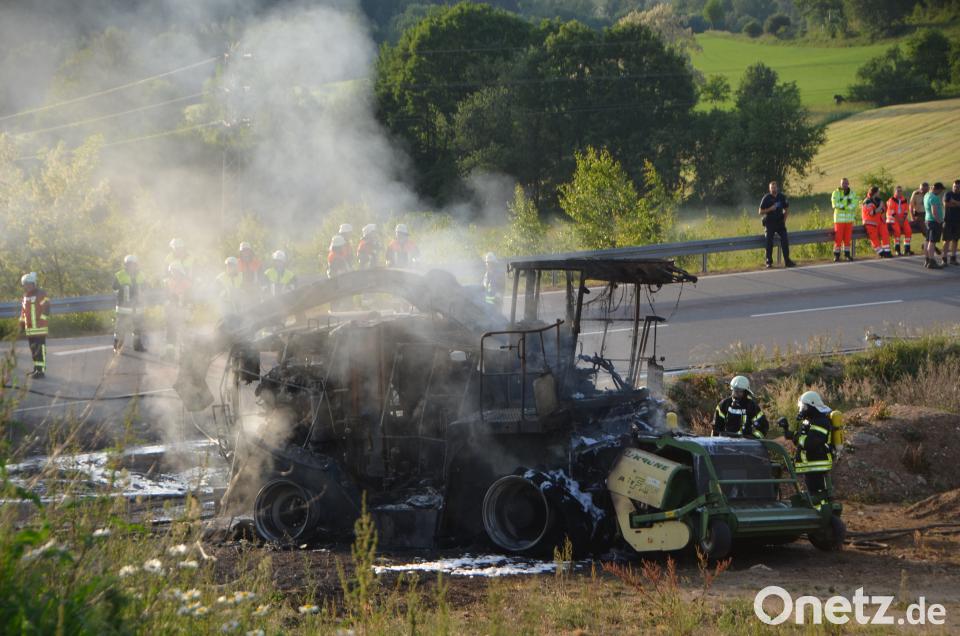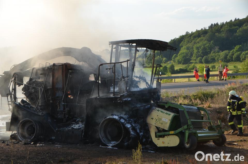 Bildergalerie: Feldhäcksler brennt neben der B22 aus