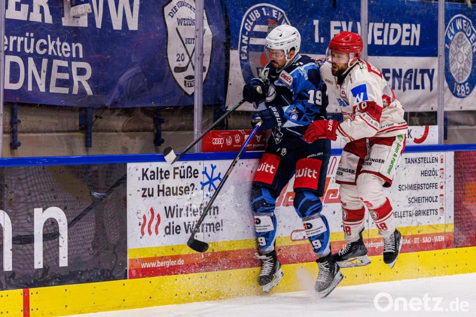 Er wurde sehnlichst zurückerwartet und gefiel bei seinem Comeback gleich mit einem Treffer: Tyler Ward (rechts) geht nach Verletzungspause wieder auf Torejagd für die Blue Devils Weiden.