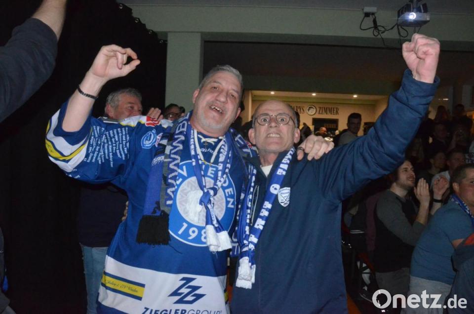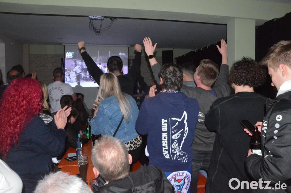 Im Neue Welt Kinocenter waren alle drei Kinosäle ausverkauft. Auch hier ging die Post ab. Alle fünf Tore der Weidener gegen die Niedersachsen wurden lautstark gefeiert. Das ging so bis eine Stunde nach Spielende. Auch im "Devils Diner" am Eisstadion gab es keine freien Plätze mehr. Hier konnte man das Spiel gleich auf mehreren Bildschirmen verfolgen. Das Diner war fest in Fan-Hand. Manche nutzten die Nähe und wollten die ganze Nacht durchfeiern, um ihre Mannschaft dann bei der Rückkehr nach Weiden zu begrüßen.
