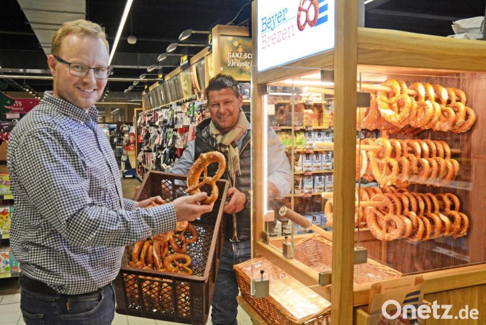 Präsentation ist alles, weiß Philipp Beyer. Der Brezenbäcker aus Weiden überrascht immer wieder mit innovativen Ideen. Jetzt stellt er den ersten SB-Automaten auf, in dem sich Kunden frische Brezen "ziehen können".