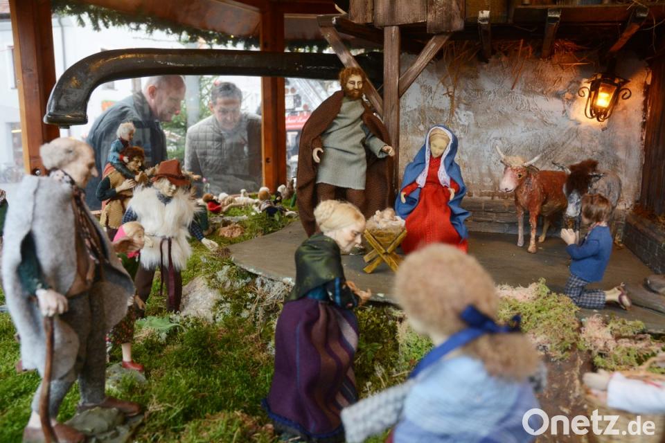 Nach knapp zwei Tagen stand sie, und wird nun bis einschließlich 30. Dezember ihre Betrachter erfreuen. Schott würde die Krippe gerne noch länger stehenlassen. "Wir bauen aber zu Silvester ab, damit das Kunstwerk während der Knallerei am Oberen Markt keinen Schaden nimmt." Die Figuren sind zum Teil aus Wachs gefertigt. Jedes Ein- und Auspacken belaste die filigranen Teile zusätzlich. Anni Panzer, die 2003 verstarb, hatte die Krippe liebevoll gestaltet. "Für mich ist es der Einstieg in die Vorweihnachtszeit", sagt Schott. Die beginnt heute auch "offiziell" mit der Eröffnung des Christkindlmarktes um 17 Uhr. Jetzt kann Weihnachten kommen.