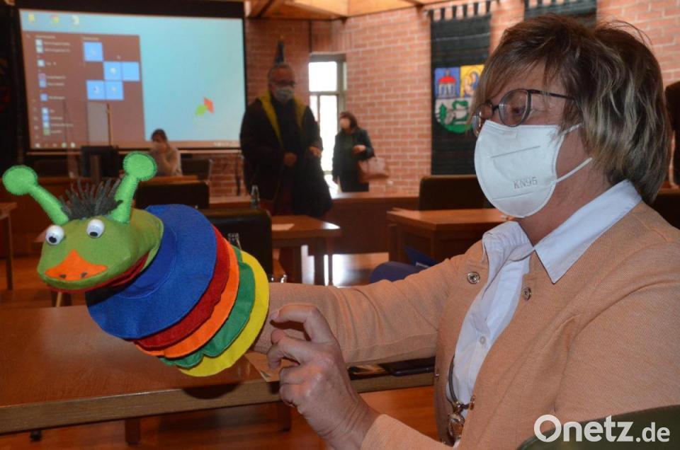 Die Plüsch-Raupe wurde von Theresa Fischer in Handarbeit hergestellt. Sie arbeitet in der Kinder- und Jugendabteilung der Regionalbibliothek. Seit Februar laufe das Leseprojekt „Regibert weckt die schlafenden Bücher“. Noch bis zum 22. April können sich Schüler der Grund- und Mittelschulen durch das Raupen-Projekt lesen. Während die Literaturtage abgeblasen wurden - "Lesungen funktionieren nur live" - und es dieses Programm voraussichtlich erst 2022 wieder gibt, werde der digitale "Regibert" aktuell durchgezogen, sagte Guhl.