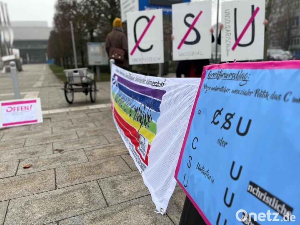 Am Rande des Neujahrsempfangs der CSU Nordoberpfalz in der Max-Reger-Halle protestierte an Dreikönig eine Handvoll Demonstranten mit Plakaten vor der Halle gegen die Politik der Partei. Initiiert hatte die Aktion das Oberpfälzer Bündnis für Toleranz und Menschenrechte. Wie Teilnehmer sagten, wenden sie sich unter anderem gegen die Positionen der CSU in Sachen Bürgergeld, Asyl und Gesellschaftspolitik, wie etwa das Genderverbot. Ferner werde die CSU von Großkonzernen gestützt und polarisiere mit dem Gedanken zur Wiedereinführung der Wehrpflicht. Die meisten Teilnehmer des Empfangs und Gastredner Edmund Stoiber nahmen davon keine Notiz und gingen wortlos an den Demonstranten vorbei.