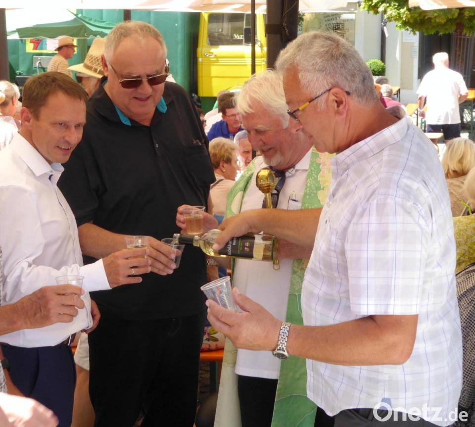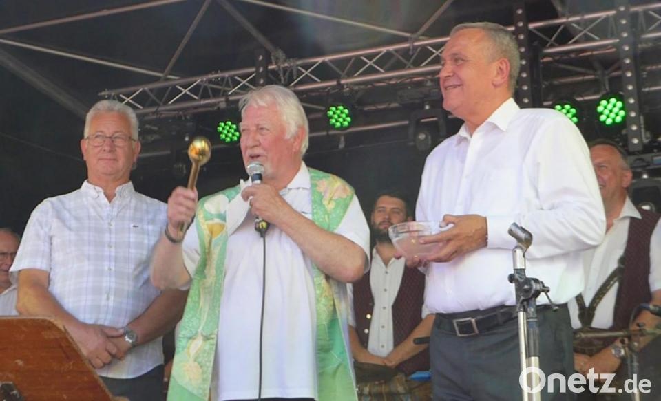 Vor dem langem "Warm-Up" am Samstag zum 49. Bürgerfest bat Dechant Franz Unger, langjähriger Pfarrer in Weiden am See, vor dem Alten Rathaus in Weiden im Beisein von Oberbürgermeister Seggewiß, Bürgermeister Schwartz sowie vieler See-Weidener und Max-Reger-Städter um den Segen "für die Güte des Jubiläumsweins". Der Wein sei zur Freude der Menschen gewachsen und Frucht des Weinstocks und der menschlichen Arbeit. Anschließend wurde ausgiebig Gebrauch gemacht, den neuen Wein zu Klängen der "Original Weidner Musikanten", verstärkt mit den "Seeweidener Dorfmusikanten" von Kurt Fuhrmann, zu probieren.