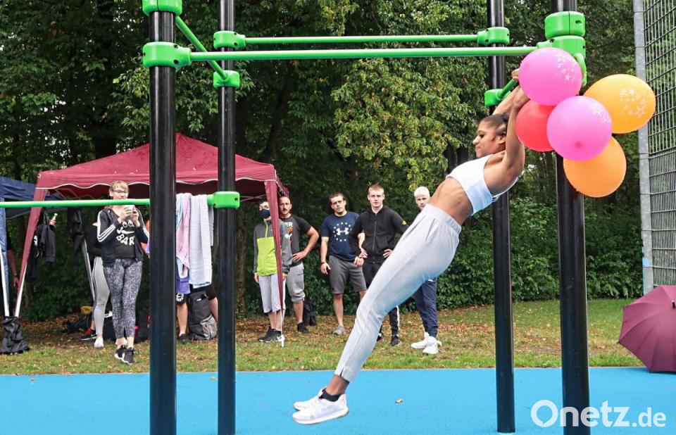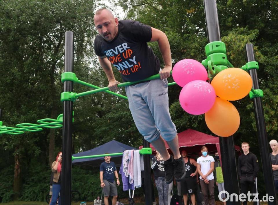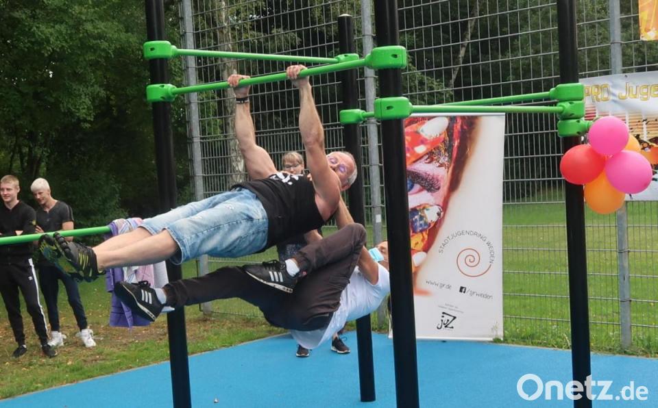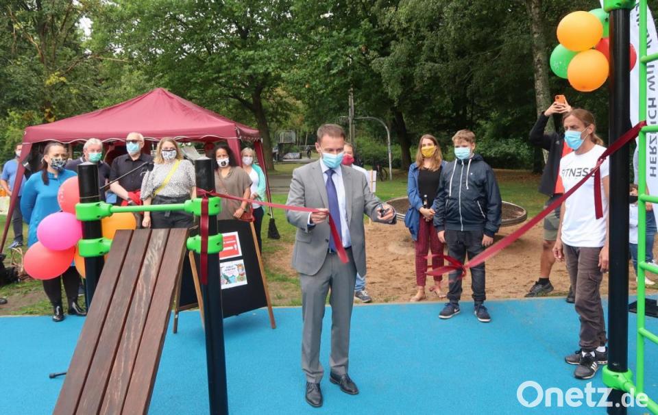 Oberbürgermeister Jens Meyer eröffnete am Samstagnachmittag auf dem Gelände des Jugendzentrums den neuen Calisthenics-Park. "Es ist wirklich ein Highlight", betonte der Rathauschef. Seit vier Monaten sei er nunmehr in Amt und Würden. "Es war eine Zeit, in der alles geschlossen wurde." Wie schön, dass er jetzt endlich mal die Gelegenheit beim Schopf packen und wieder etwas eröffnen könne. Dies sei ein ganz wichtiges Signal auch an die Bevölkerung. "Das Leben geht trotz Corona weiter. Wir haben uns zwar beeindrucken, aber niemals unterkriegen lassen."